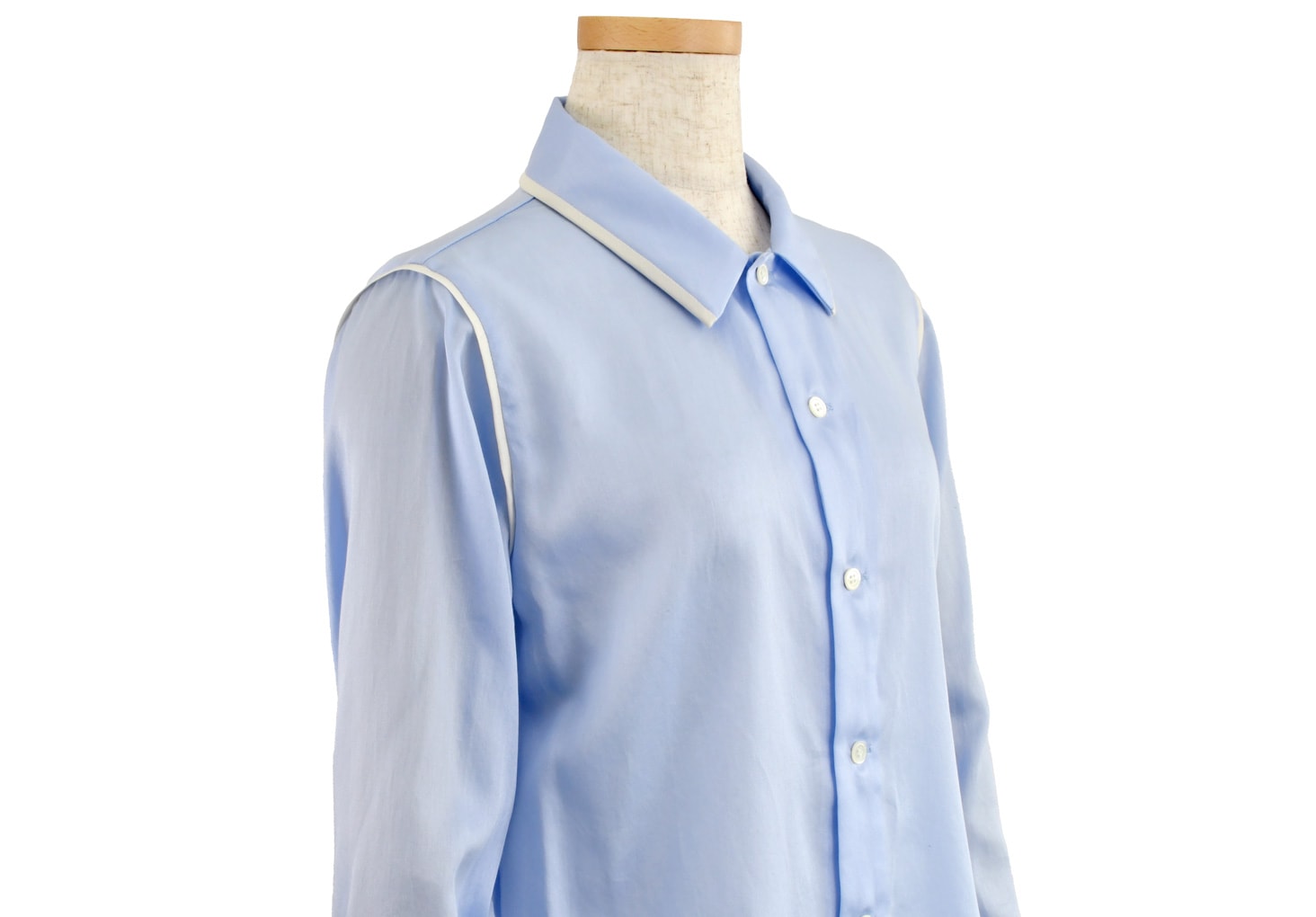 均一にパイピングされた丁寧な仕事です。他にない上質な印象がうれしいベーシックシャツです。