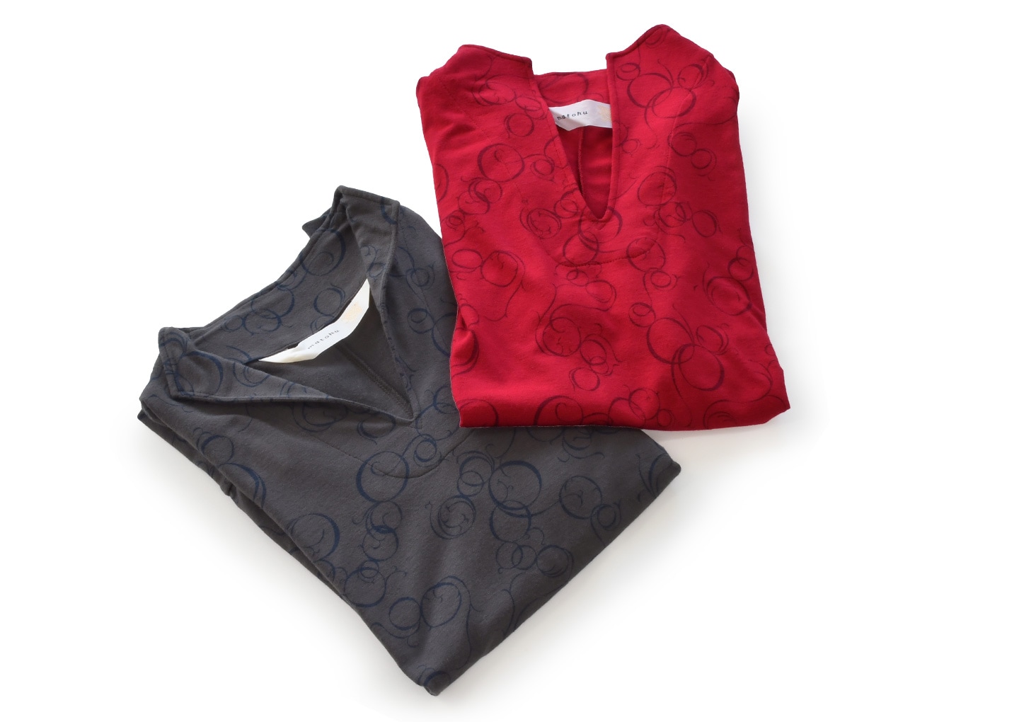 プリントの柄はよく見ると数字の「8」の文字が植物のようにからみ合う柄になっています。「8の字唐草」と名付けました。