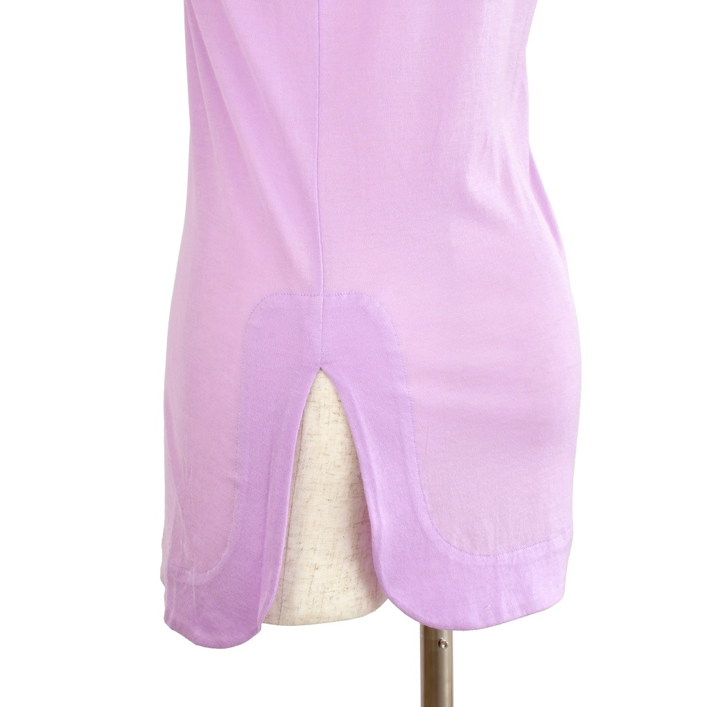 腰の位置から入ったスリットで、締め付けの少なく、長めの着丈で腰回りもきちんとカバーしてくれます。曲線のスリットで、めくれにくく、しっかりとデザインキープ。ボトムスをちらりとのぞかせて、シンプルな中にも遊び心あるコーディネートに。