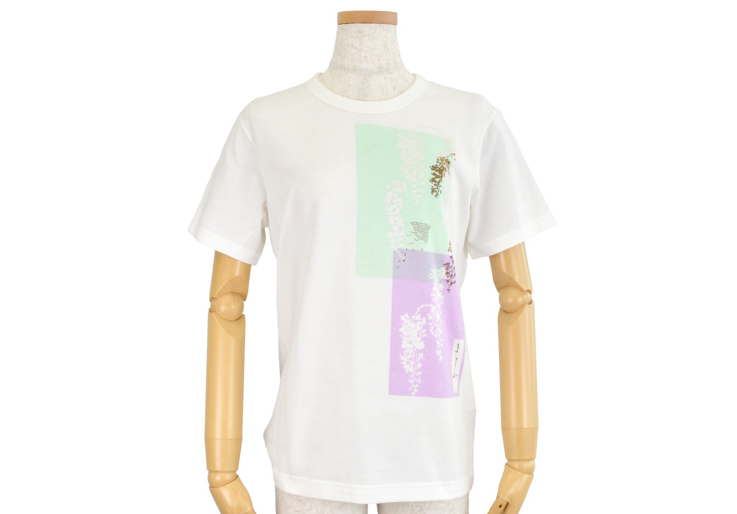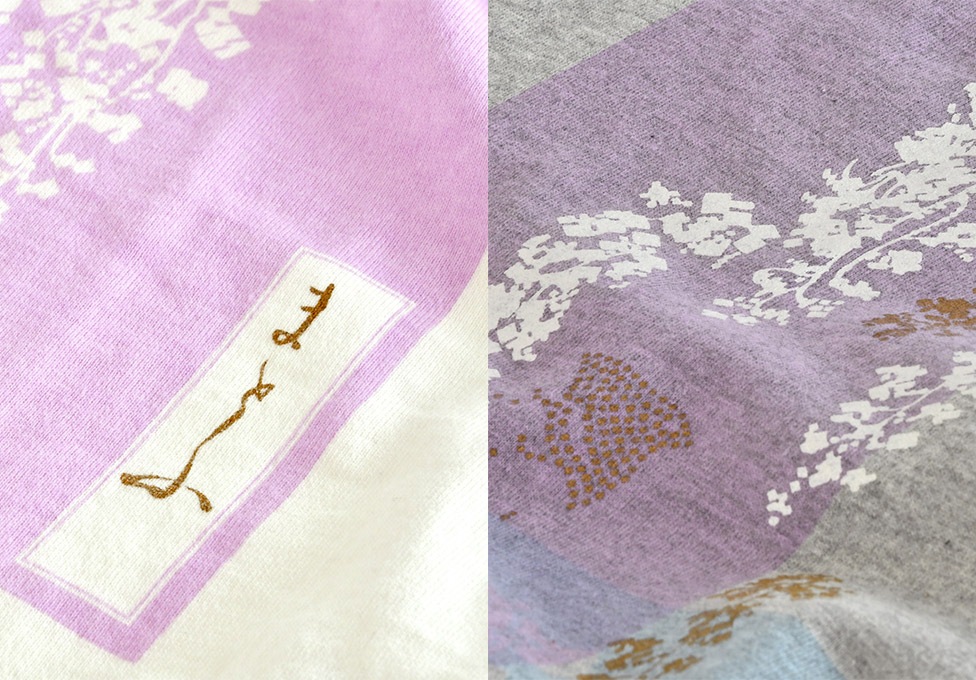 藤の花が描かれた和綴本を手捺染でプリントしたTシャツです。