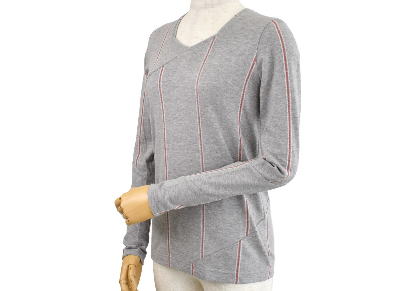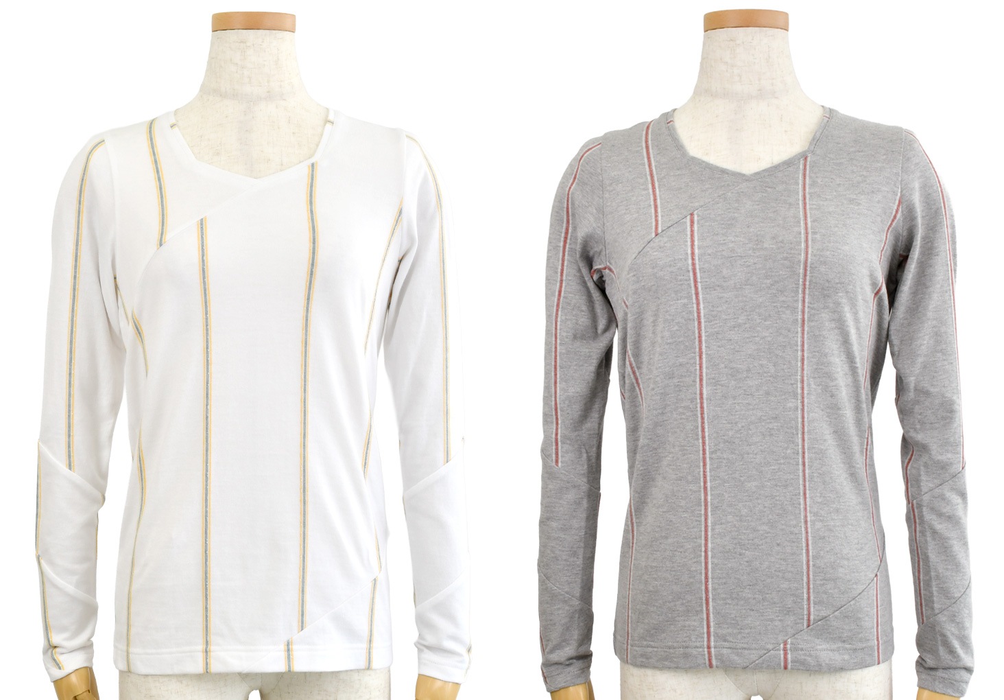 身頃を大胆に斜めに切り替えたデザインの長袖カットソーです。